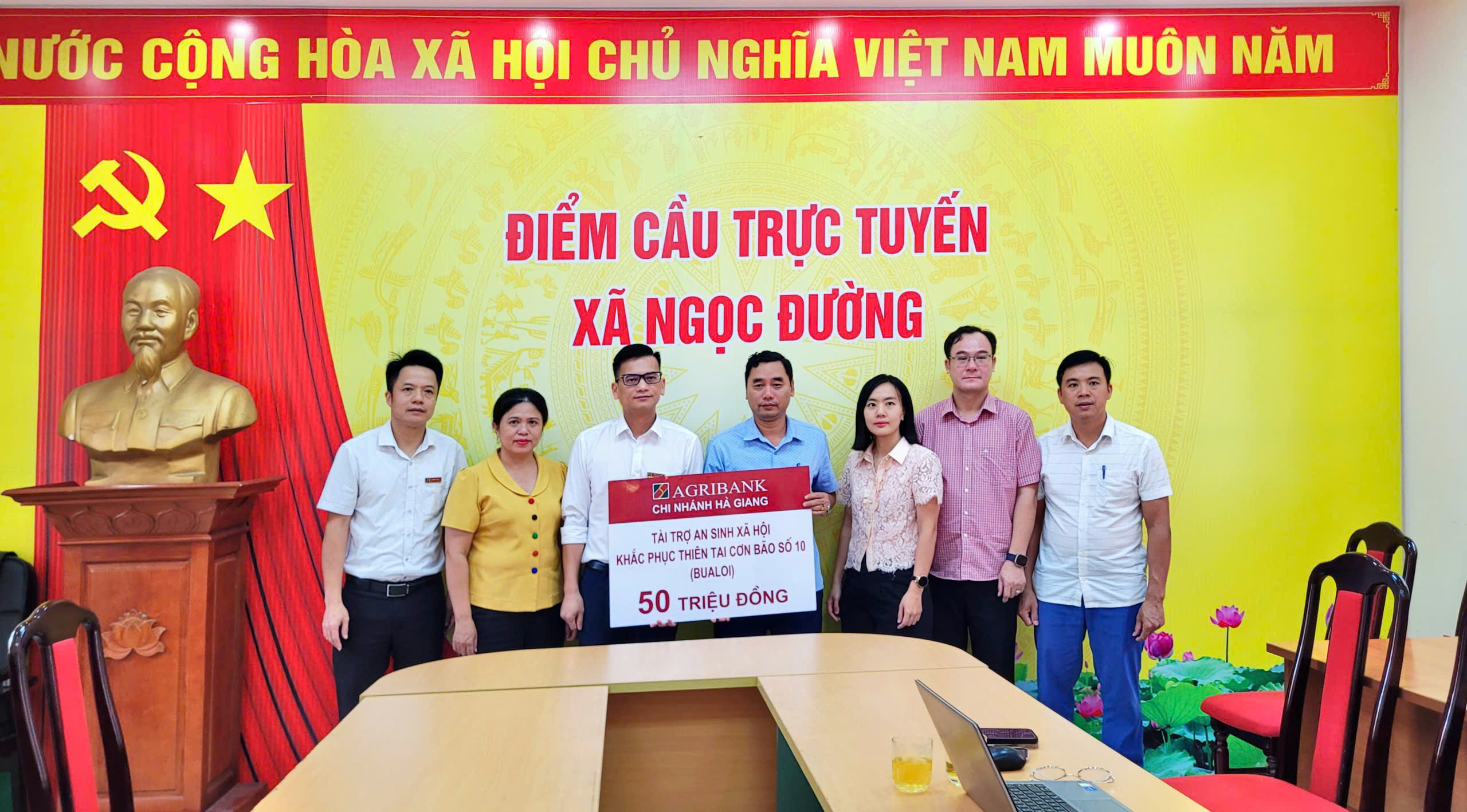 Khoản kinh phí 50 triệu đồng được Agribank hỗ trợ với mục đích giúp xã Ngọc Đường kịp thời khắc phục hậu quả sau bão, hỗ trợ các hộ dân bị ảnh hưởng nặng nề. Đây là hoạt động thiết thực, thể hiện tinh thần “tương thân tương ái”, trách nhiệm xã hội và sự đồng hành của Agribank cùng chính quyền, nhân dân các địa phương vùng khó khăn.