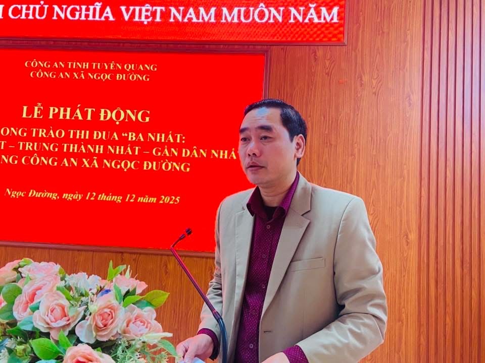 Phát biểu tại Lễ phát động, đồng chí Nguyễn Mạnh Thắng, Phó Bí thư Đảng ủy, Chủ tịch UBND xã nhấn mạnh: phong trào thi đua “Ba nhất” có ý nghĩa quan trọng trong việc bồi đắp phẩm chất đạo đức, bản lĩnh chính trị và tinh thần trách nhiệm của người chiến sĩ Công an nhân dân; qua đó góp phần xây dựng lực lượng Công an xã chính quy, tinh nhuệ, hiện đại. Đồng chí yêu cầu lực lượng Công an xã tiếp tục siết chặt kỷ luật, kỷ cương; thực hiện nghiêm Điều lệnh Công an nhân dân; tăng cường bám sát địa bàn, lắng nghe tâm tư, nguyện vọng của nhân dân; chủ động phối hợp với cấp ủy, chính quyền, các ban, ngành, đoàn thể trong công tác tuyên truyền, giải quyết kịp thời các mâu thuẫn ngay từ cơ sở, xây dựng xã Ngọc Đường bình yên, ổn định và phát triển.
