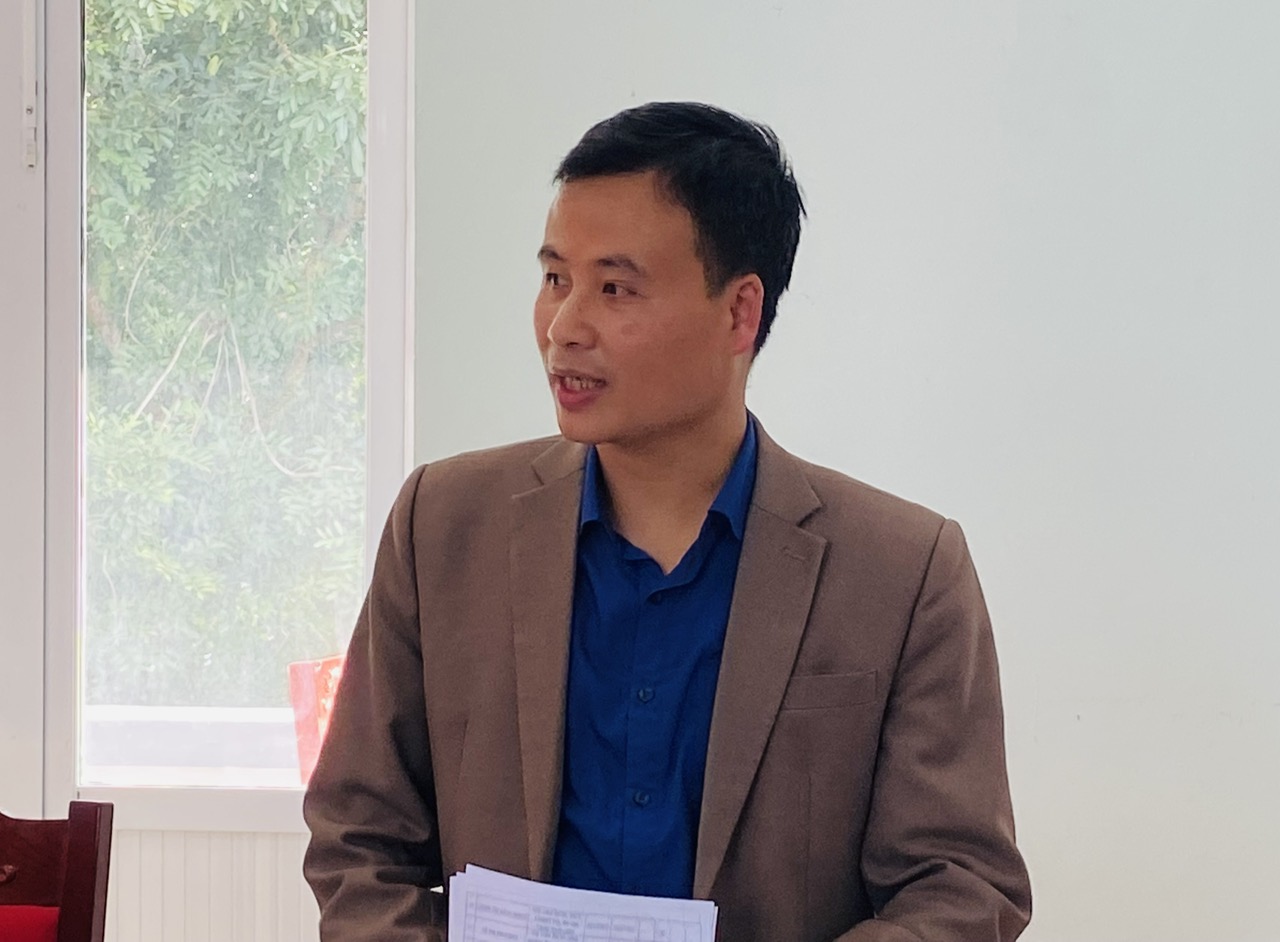 Trưởng ban Xây dựng Đảng Đảng uỷ xã Nguyễn Tiến Linh thông qua hướng dẫn đánh giá tập thể và cá nhân các đồng chí Uỷ viên Ban Thường vụ Đảng uỷ xã