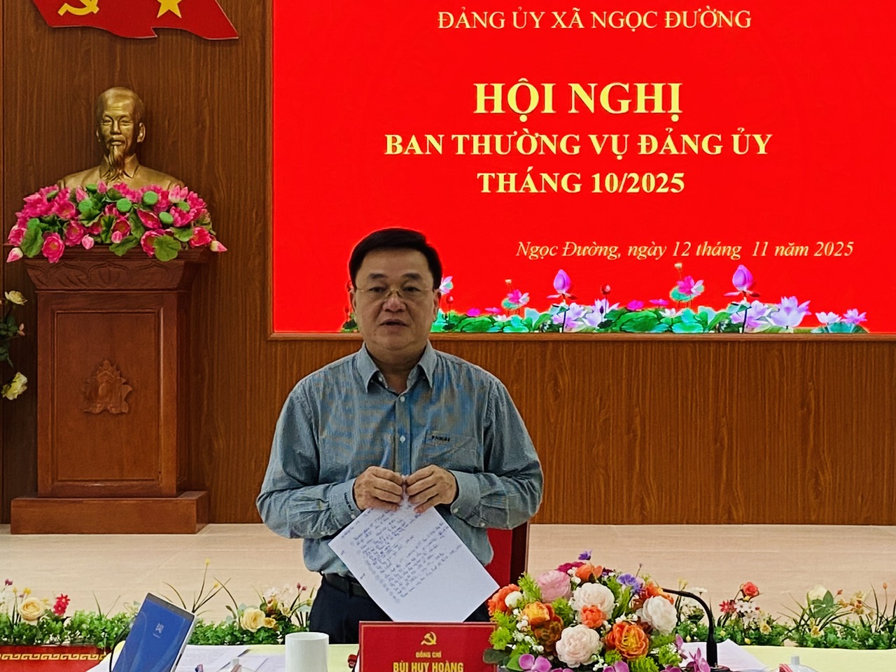 Trong tháng 10/2025, Thường trực, Ban Thường vụ Đảng ủy duy trì và thực hiện nghiêm Quy chế làm việc, nguyên tắc tập trung dân chủ, đoàn kết, thống nhất, quyết liệt trong lãnh đạo, chỉ đạo; thực hiện nghiêm túc các văn bản chỉ đạo của cấp trên. Sâu sát cơ sở nắm tư tưởng, nguyện vọng của nhân dân. Tăng cường công tác giáo dục chính trị tư tưởng, đạo đức, lối sống và kịp thời thông tin tuyên truyền các vấn đề thời sự, chính trị cho cán bộ, đảng viên và nhân dân. Tăng cường công tác xây dựng Đảng, bảo vệ chính trị nội bộ, kết nạp được 02 đảng viên, chuyển đảng chính thức 07 đảng viên. Công tác tác kiểm tra, giám sát, kỷ luật của Đảng đã chỉ đạo phòng, chống tham nhũng, lãng phí, tiêu cực tại xã Ngọc Đường kịp thời; tiếp nhận, quản lý, sử dụng tài sản theo nguyên tắc công khai, minh bạch, đúng mục đích; quản lý và sử dụng nguồn tài chính, tài sản thực hiện tiết kiệm, hiệu quả.