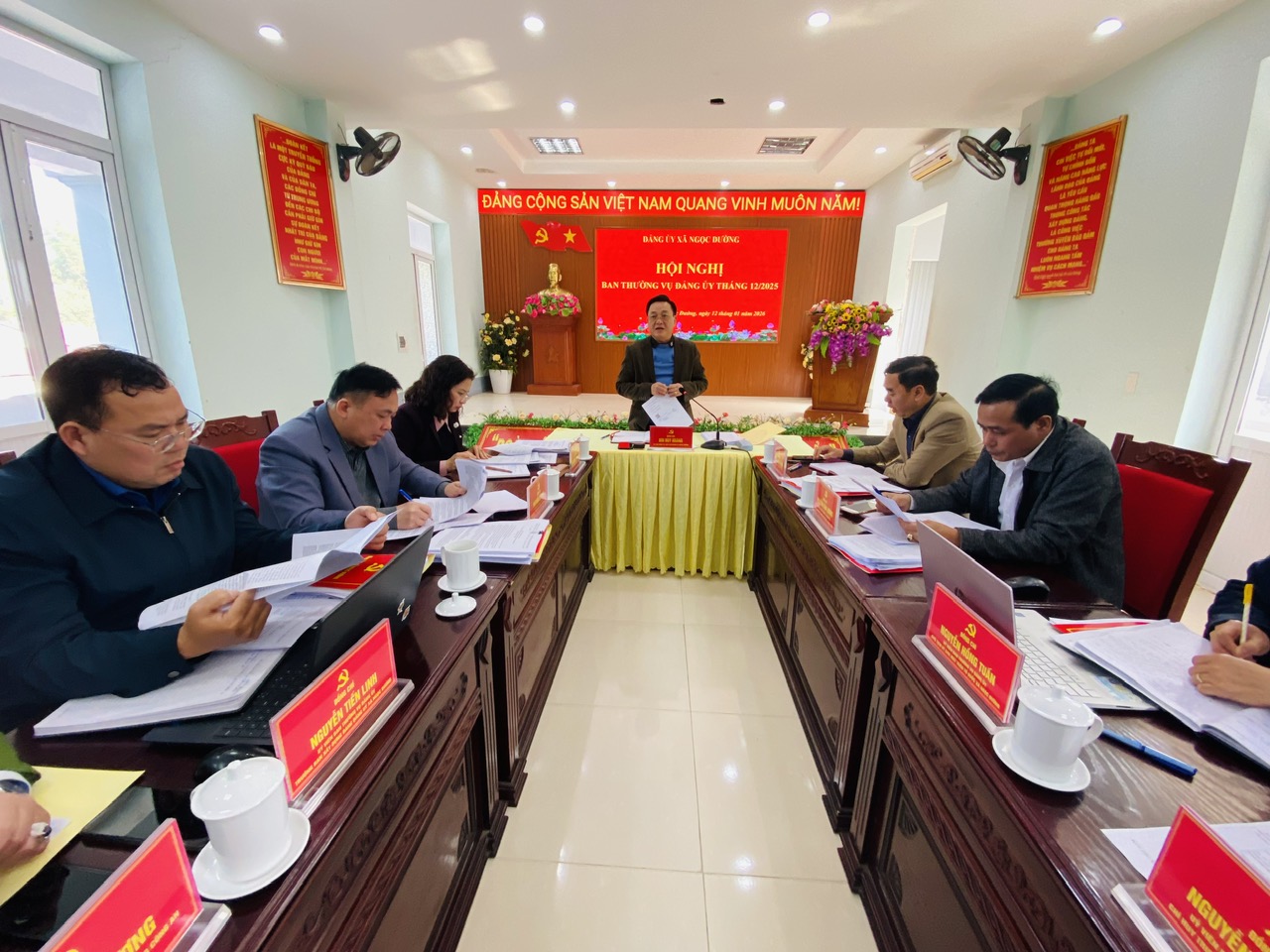 Kết luận hội nghị, đồng chí Bùi Huy Hoàng, Bí thư Đảng ủy, Chủ tịch HĐND xã yêu cầu Ban Thường vụ Đảng ủy xã tiếp tục tăng cường lãnh đạo, chỉ đạo công tác tuyên truyền, giáo dục chính trị, tư tưởng, đạo đức, lối sống cho cán bộ, đảng viên; chuẩn bị tốt các điều kiện tổ chức cuộc bầu cử đại biểu Quốc hội khóa XVI và bầu cử đại biểu Hội đồng Nhân dân các cấp nhiệm kỳ 2026 – 2031; chỉ đạo sản xuất vụ đông xuân 2025 – 2026 đúng khung thời vụ; thực hiện tốt công tác an sinh xã hội, thăm hỏi, trao quà Tết cho các đối tượng chính sách với phương châm “không để ai bị bỏ lại phía sau”; quyết tâm xây dựng xã Ngọc Đường ngày càng phát triển, đổi mới./.