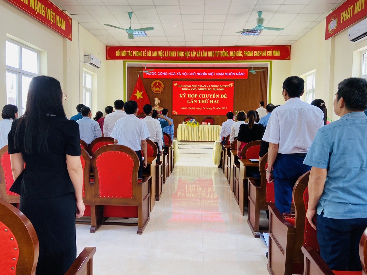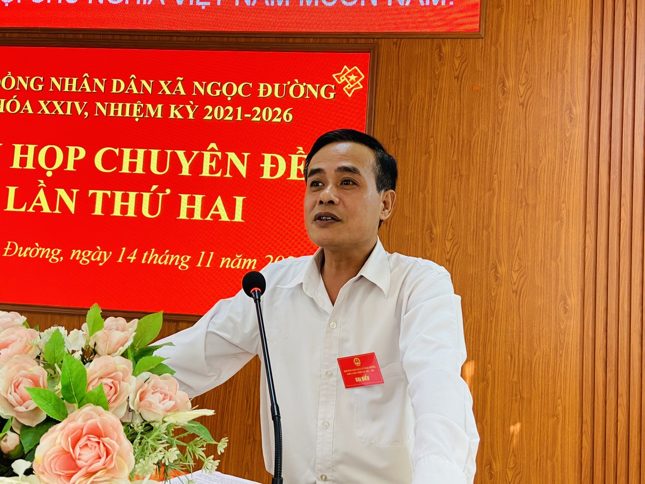 Tại Kỳ họp, đồng chí Chủ tịch tịch Ủy ban nhân dân (UBND) xã đã thông qua 07 tờ trình gồm: Việc điều chỉnh nội dung chi thực hiện dự toán ngân sách nhà nước năm 2025; việc phân bổ dự toán chi thường xuyên ngân sách nhà nước thực hiện Chương trình mục tiêu quốc gia (MTQG) giảm nghèo bền vững năm 2025 (đợt 1); việc phân bổ dự toán chi thường xuyên ngân sách nhà nước thực hiện Chương trình mục tiêu quốc gia phát triển kinh tế - xã hội vùng đồng bào dân tộc thiểu số và miền núi năm 2025 (đợt 1); việc đề nghị cho chủ trương về việc bổ sung danh mục dự án theo quyết định 828/QĐ-UBND ngày 09/10/2025 của UBND tỉnh và bổ sung kế hoạch vốn đầu tư công trung hạn giai đoạn 2021 - 2025, kế hoạch đầu tư công năm 2025 của xã; việc đề nghị cho chủ trương về việc bổ sung danh mục dự án đầu tư và điều chỉnh, bổ sung kế hoạch vốn đầu tư công trung hạn giai đoạn 2021 - 2025 và kế hoạch đầu tư công năm 2025 của xã; việc đề nghị cho chủ trương về việc điều chỉnh, bổ sung và phân bổ kế hoạch vốn đầu tư phát triển giai đoạn 2021 - 2025 và năm 2025 nguồn ngân sách nhà nước thực hiện Chương trình MTQG xây dựng nông thôn mới (NTM) xã Ngọc Đường; việc tạm giao số lượng người làm việc cho đơn vị sự nghiệp công lập thuộc UBND xã Ngọc Đường năm 2025.