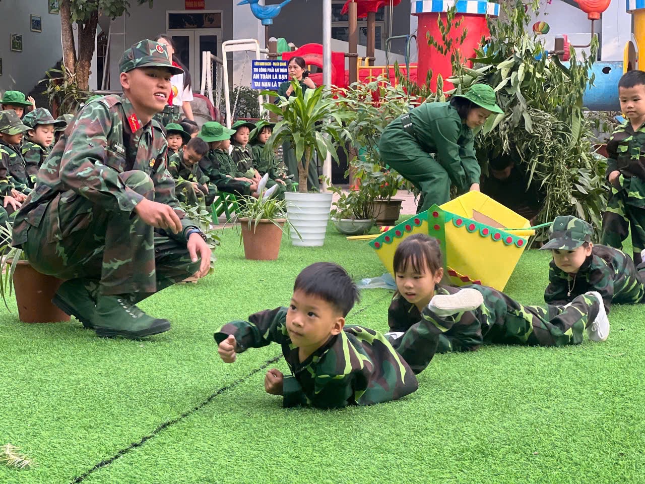 Thiết thực chào mừng kỷ niệm 81 năm Ngày thành lập Quân đội nhân dân Việt Nam, nhằm giáo dục truyền thống cách mạng cho trẻ mầm non, vừa qua Trường Mầm non Ngọc Đường, tỉnh Tuyên Quang đã tổ chức hoạt động ngoại khóa “Một ngày làm chiến sĩ”. Dự chương trình có lãnh đạo Trung đoàn 877, Bộ Chỉ huy Quân sự tỉnh Tuyên Quang; lãnh đạo các thôn; cán bộ, giáo viên, trẻ mầm non của nhà trường cùng đông đảo phụ huynh trên địa bàn xã.