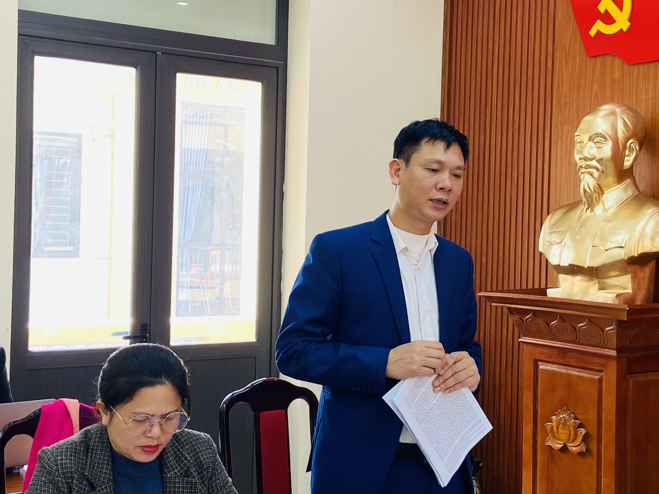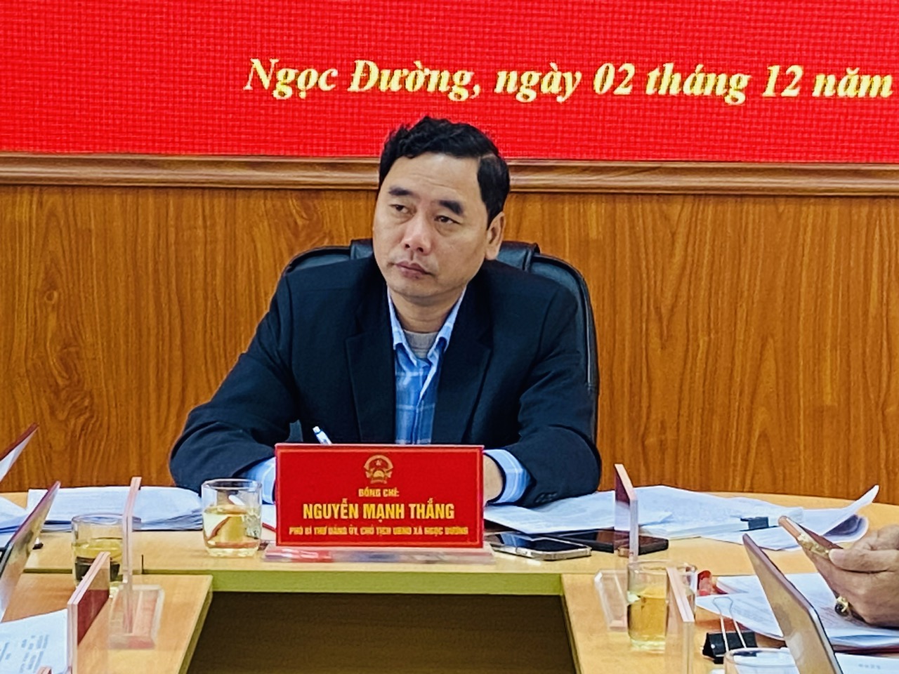 Đồng chí Nguyễn Mạnh Thắng, Phó Bí thư Đảng uỷ, Chủ tịch UBND xã chủ trì phiên họp