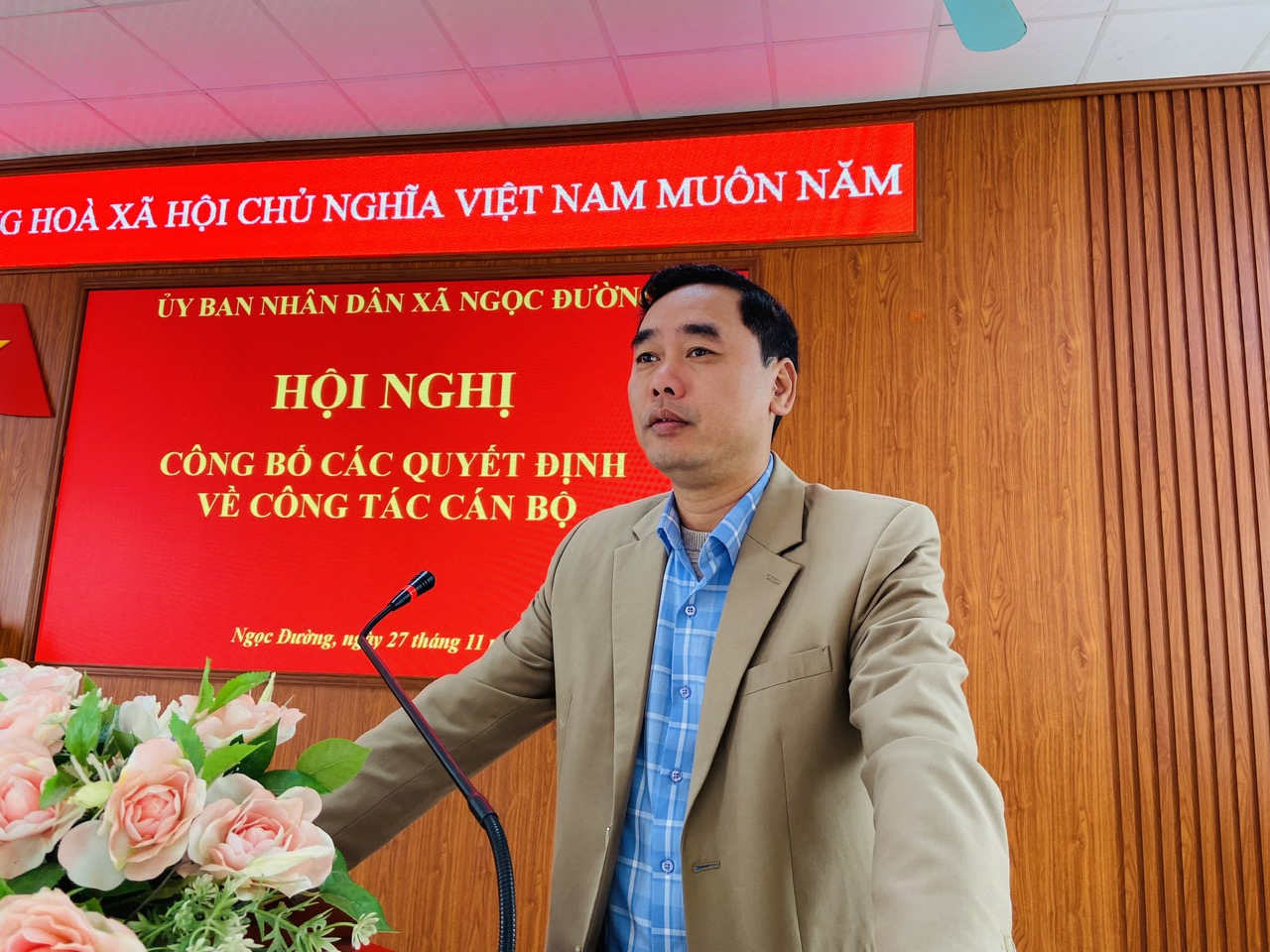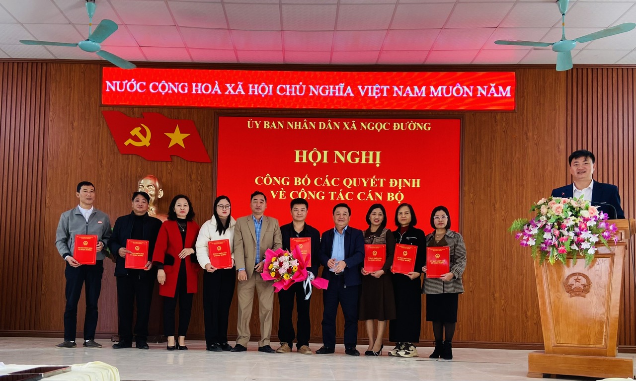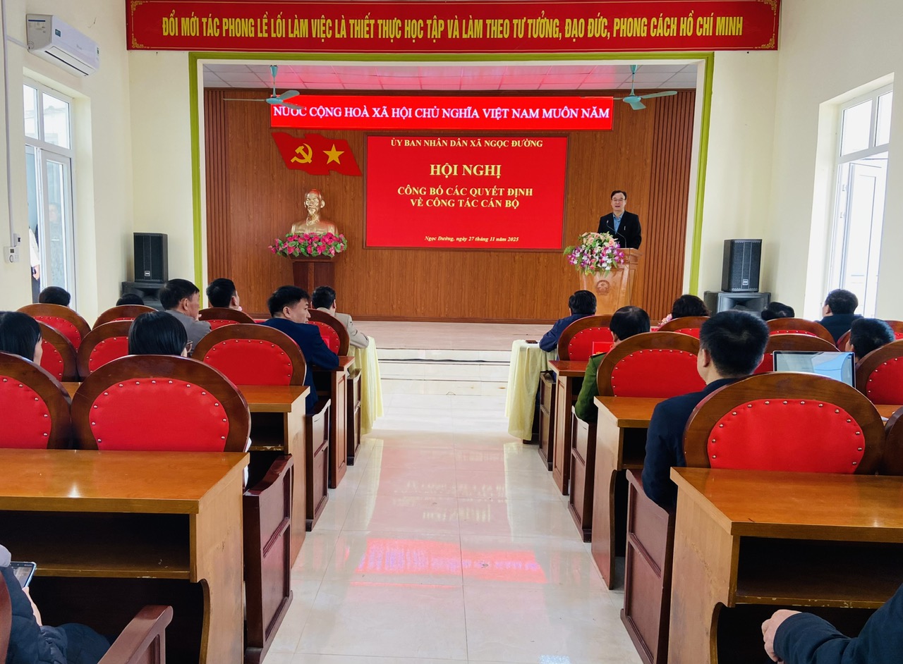 Tại hội nghị, thừa uỷ quyền của Chủ tịch UBND xã, đồng chí Vương Đình Cường, Trưởng phòng Văn hoá - Xã hội đã thông qua quyết định thành lập Trung tâm Dịch vụ công xã Ngọc Đường, tỉnh Tuyên Quang. Cùng với đó, thông qua các quyết định về việc tiếp nhận và phân công 07 viên chức đến nhận công tác tại Trung tâm Dịch vụ công xã Ngọc Đường từ ngày 19/11/2025, gồm các đồng chí: Bùi Xuân Long, Phan Văn Chiến, Đặng Thị Minh Phượng, Lê Thị Lanh, Chu Thị Bích Hiệp, Nguyễn Thị Quỳnh, Nguyễn Quốc Anh. Hội nghị thông qua quyết định thành lập Trung tâm học tập cộng đồng xã Ngọc Đường, tỉnh Tuyên Quang và quyết định bổ nhiệm Ban Giám đốc gồm: Đồng chí Bùi Thị Na, Phó Chủ tịch UBND xã giữ chức vụ Giám đốc; các Phó Giám đốc gồm đồng chí Vương Đình Cường, Trưởng phòng Văn hoá - Xã hội và đồng chí Đặng Thế Anh, Giáo viên trường Tiểu học Yên Định, xã Ngọc Đường.