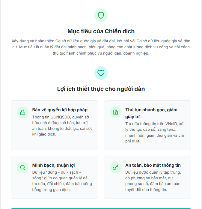 Chiến dịch được tổ chức nhằm xây dựng và hoàn thiện Cơ sở dữ liệu quốc gia về đất đai, kết nối, chia sẻ với Cơ sở dữ liệu quốc gia về dân cư và các cơ sở dữ liệu khác. Qua đó, giúp quản lý nhà nước về đất đai minh bạch, hiệu quả; đồng thời nâng cao chất lượng cung cấp dịch vụ công và đẩy mạnh cải cách thủ tục hành chính phục vụ người dân, doanh nghiệp.